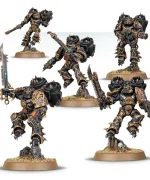 Esta caja contiene 116 piezas de plástico multicomponente, cinco peanas redondas de 32 mm, y una hoja de calcomanías de Chaos Space Marines, con los que montar 5 Raptors o 5 Warp Talons de los Chaos Space Marines.