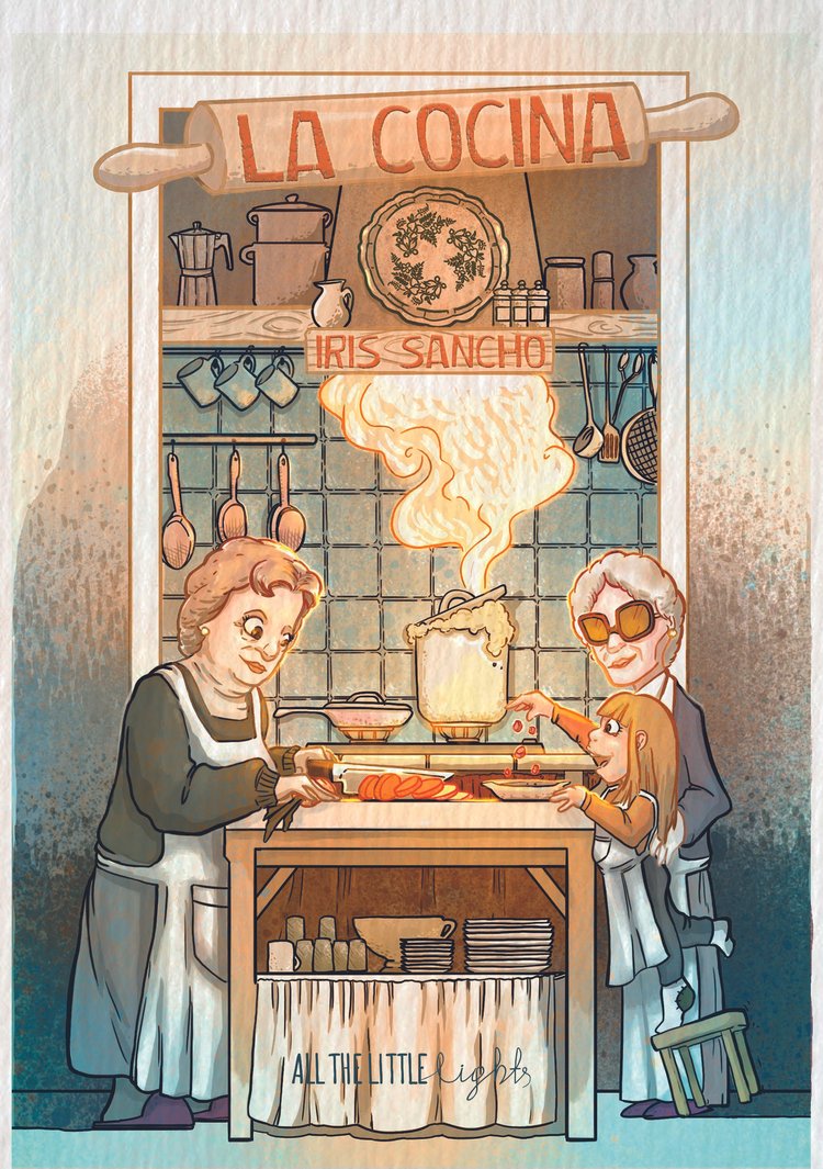 «Gran parte de los recuerdos felices que atesoro de mi infancia y mi adolescencia transcurrieron alrededor de unos fogones. Ayudando a mis abuelas, a mi madre o a mi padre a cortar esto y amasar lo otro, o preparando en un hornillo de gas en mitad del campo la comida para siete amigos hambrientos sin dejar de hablar, de compartir, de imaginar historias». Iris Sancho.